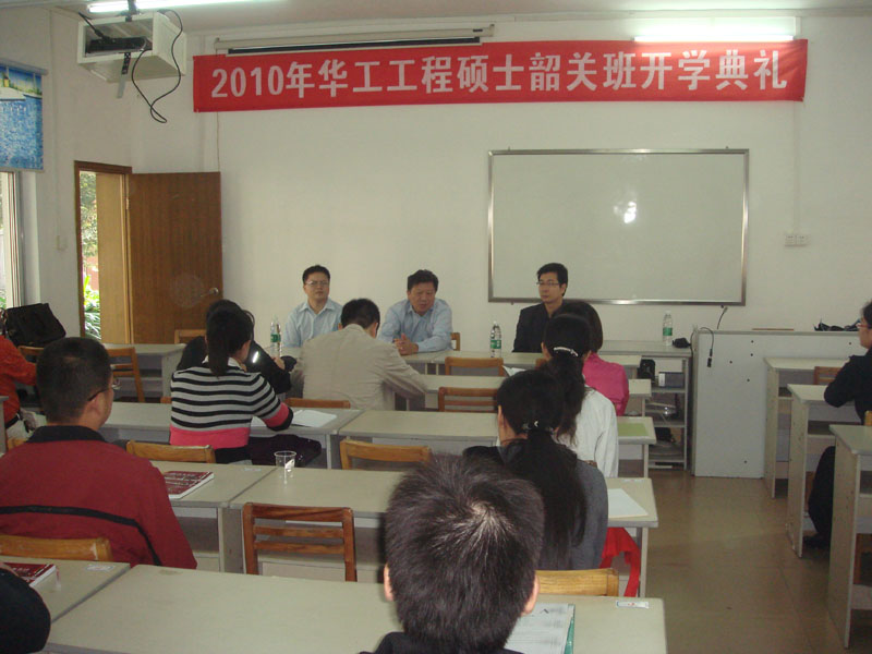 2010年11月13日华南理工大学工程硕士韶关班在华工网院韶关粤北教学中心(韶关市第八中学内)举行了开学典礼和开班仪式。在开学典礼上,华工的蒋书记作了热情洋溢的讲话,他勉励大家,“以华工为荣,正确处理工、学矛盾,学以致用,为华工添彩,为社会作贡献”。华工工程硕士韶关班的开办,对韶关地区培养高素质人才有重大的推动作用。