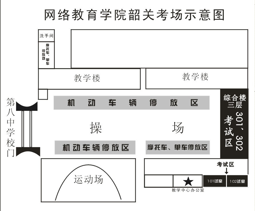7、考生汽车、摩托车等交通工具可停放在第八中学蓝球场处(综合楼门前20米、教学中心办公楼前禁停一切车辆)。