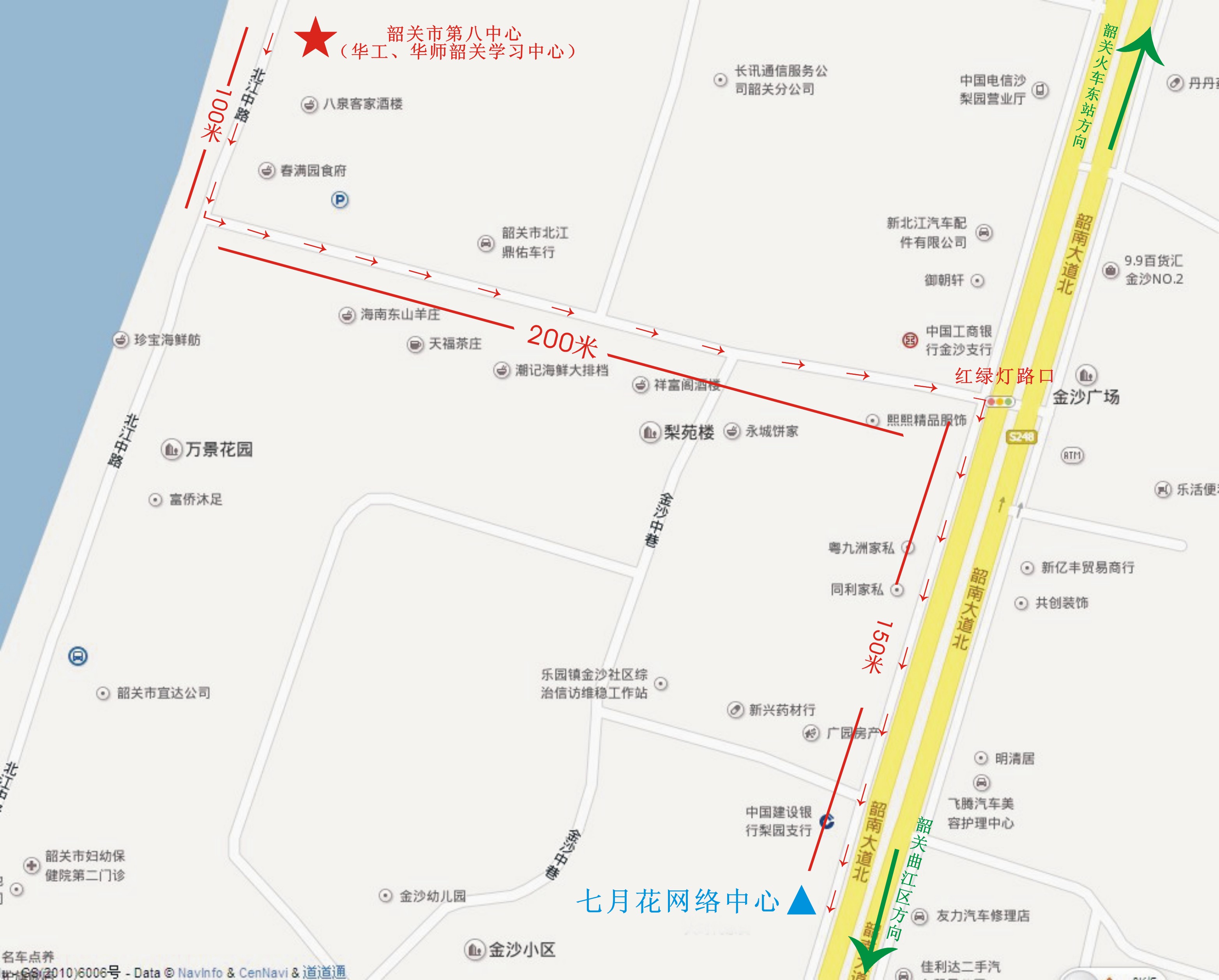 韶关粤北学习中心 至 七月花网络中心 行程示意图(点击放大)