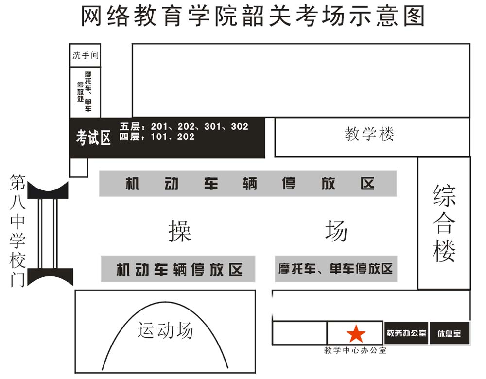 7、考生汽车、摩托车等交通工具可停放在第八中学蓝球场处(综合楼门前20米、教学中心办公楼前禁停一切车辆)。