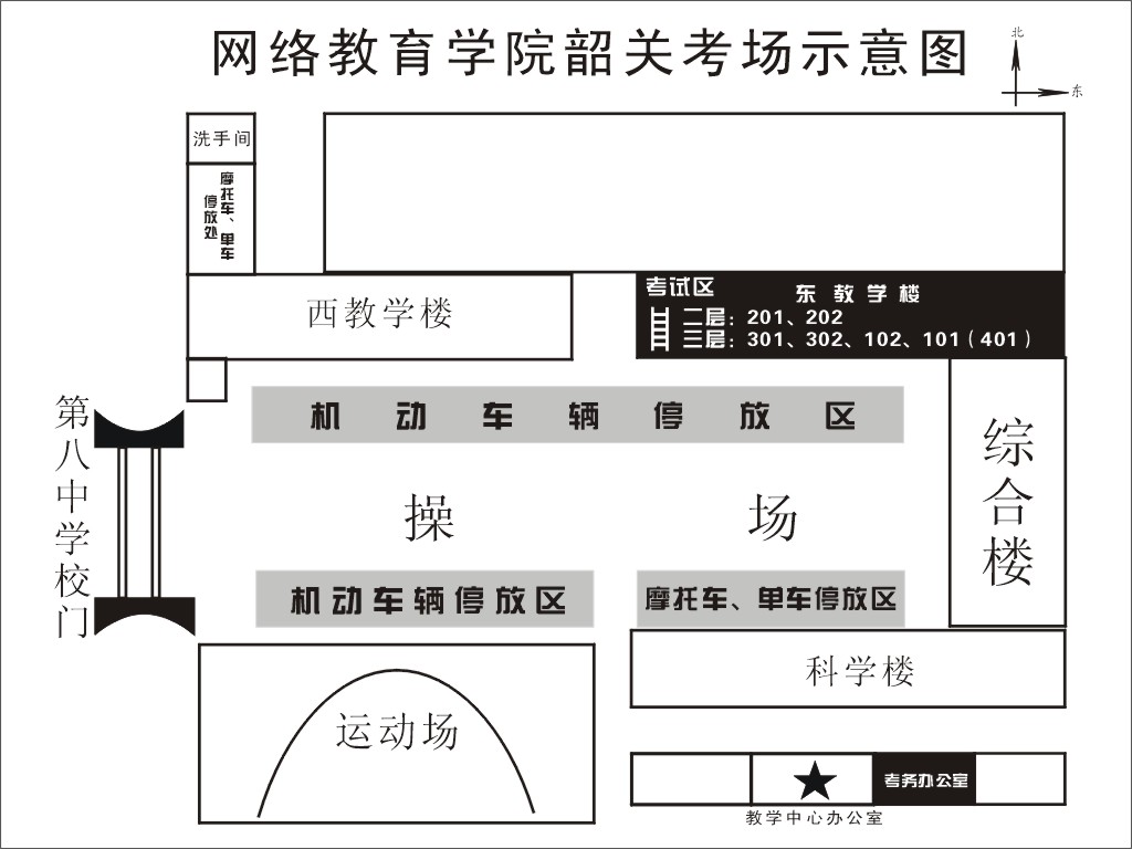 8、由于特殊情况,7月9日校园内禁止停放一切车辆。7月10日考生汽车、摩托车等交通工具可停放在第八中学蓝球场处(综合楼门前20米、教学中心办公楼前禁停一切车辆)。