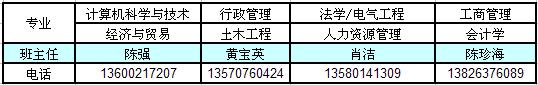 各专业班主任设置如下表