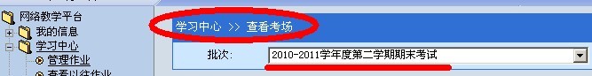选择“2010-2011学年度第二学期考试”和“2010-2011学年度第二学期学位课程考试”批次