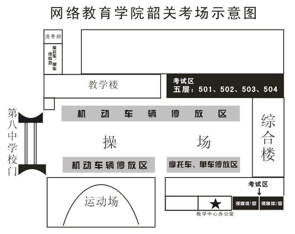 二、考场设在韶关市第八中学(南郊三公里滨江路),各专业试室请查看上表或考场公布栏。