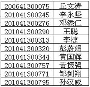 跟读生交费单科进修编号及名单: