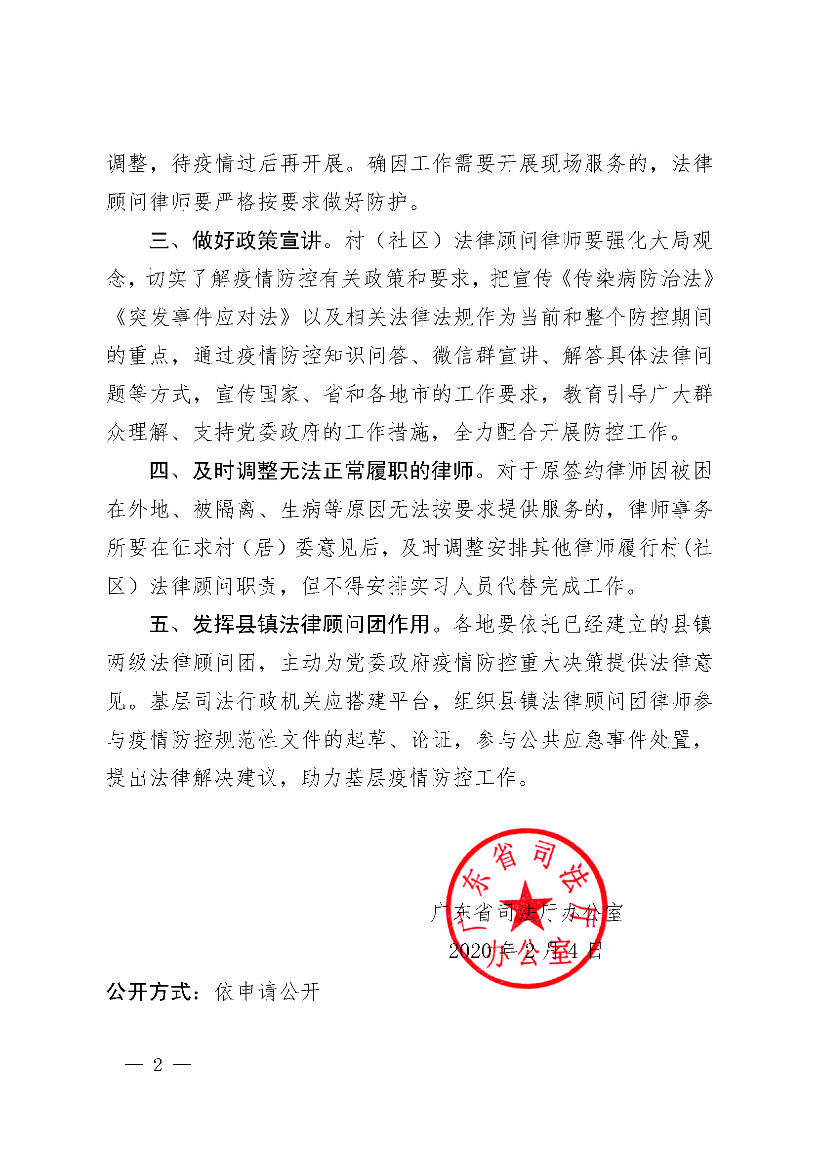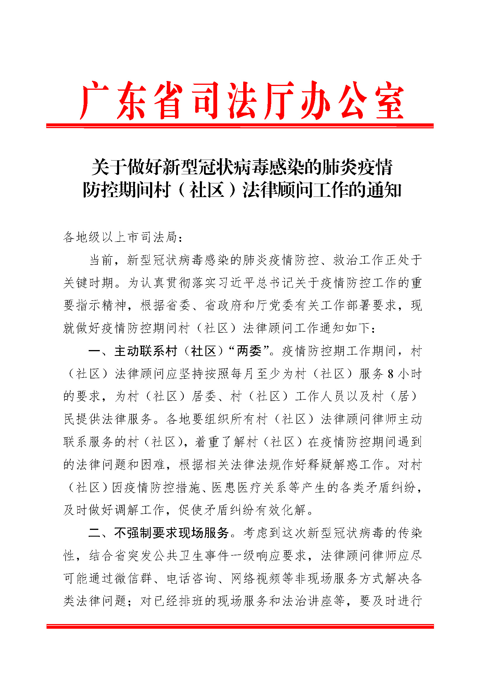 关于做好新型冠状病毒感染的肺炎疫情防控期间村(社区)法律顾问工作的通知